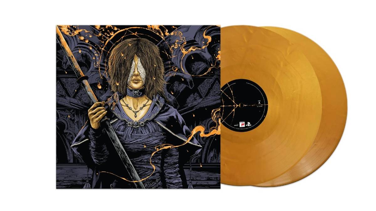 The soundtrack is pressed on two beautiful golden discs, similar in color to the Gears 5 vinyl album that came out early last year. The artwork for the new vinyl was created by Ken Taylor and features the Maiden in Black on the front cover. The inside cover of the new pressing opens into an expansive gatefold that displays etched symbols in the same vibrant gold as the records themselves.