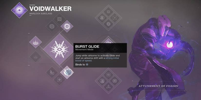 Attunement of Fission has the abilities: Nova Warp, Atomic Breach, Dark Matter, and Handheld Supernova. Nova Warp replaces the Nova Bomb as your super, instead of giving you a roaming super. This allows you to fire a beam of Void light at targets, dealing heavy damage over time to them, though it's a bit less powerful than most other roaming supers in the game, as far as Crucible goes.