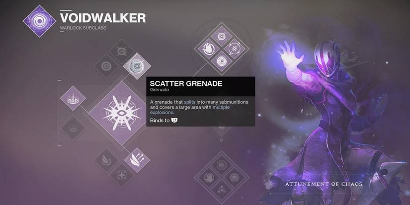 The Scatter Grenade splits into a bunch of small Void explosions upon coming into contact with a surface, making it a great way to blanket an area in immediate damage, and ensuring an enemy isn't likely to dodge the damage, either.