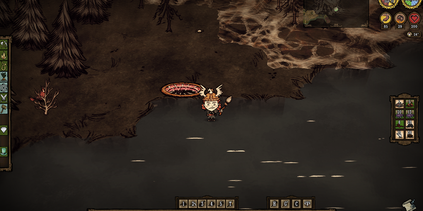 When you're deciding where to place your base, make sure that you focus on what the food sources nearby are going to be. Is there a pond to fish or get frog legs? If you're playing someone strong like Wigfrid or someone with a combat bonus like Wendy, is there a herd of beefalo nearby?