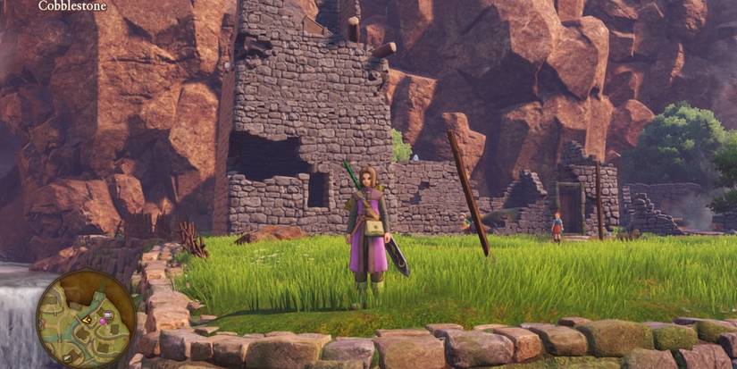 During the events of the game's main story, Cobblestone, the place where the Hero was raised, is attacked and badly damaged. It is then left in disrepair as the party head off to save the world, effectively leaving the Hero without a home to return to. In the post-game, however, Cobblestone can be rebuilt to its former glory.