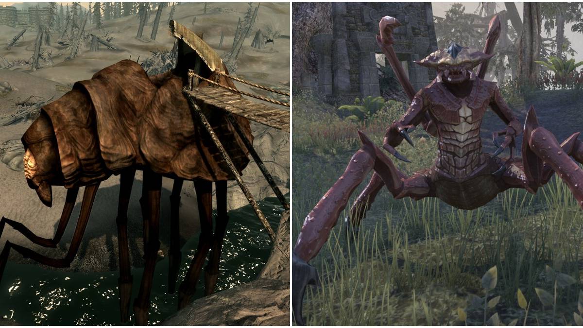 The silt strider has appeared in several Elder Scrolls games, but they are most well known as a popular form of transportation in Morrowind. These alien beings may be huge and hulking, but they are actually docile and tamed, acting more like a bus than a wild creature. They look like some sort of miniscule bug that was grown to giant size and used as a caravan. Their bizarre presence in Morrowind is in lieu of a fast travel option.