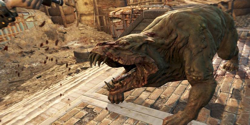 As the player ventures out into the wasteland and encounters these super mutants, they'll also notice that quite often they'll be accompanied by mutant hounds who act as watchdogs and guard dogs to the super mutants. In fact, humans were not the only beings the Institute infected with FEV.