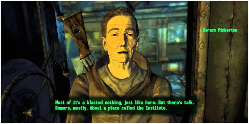 The Institute was first referenced in Fallout 3 when the player visits Rivet City. The player is able to meet a man named Dr. Zimmer, who is searching for a synth, named an android at the time. Dr, Zimmer is revealed to be a member of The Institute, and members of the Railroad are also met.