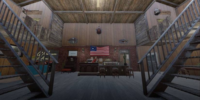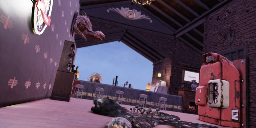 The bar, which recently underwent some refurbishments, sports the taxidermy remains of several beasts that roam the remains of West Virginia. The barstools are situated into an open space so that the patrons can appreciate the beauty of wastelands while they enjoy their drinks. The spot is a location on various 76 virtual bar crawls.