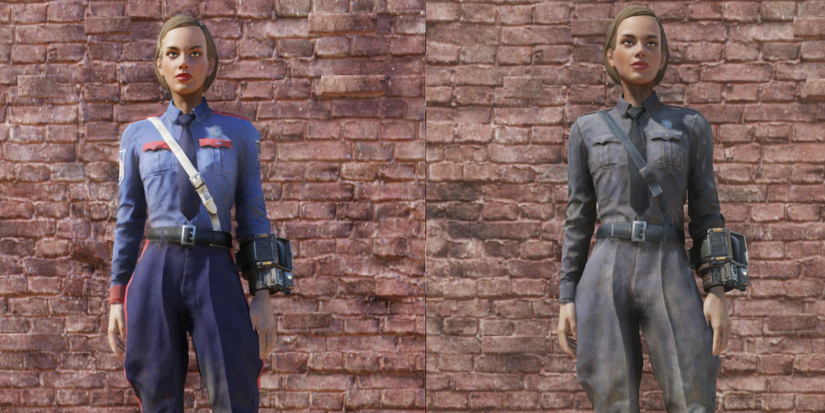 The Responder police uniform serves as one of many "gears" players can wear that symbolize their membership within the Responders faction. This uniform resembles 1950s police uniforms, coming with a blue shirt (complete with red pocket flaps and straps), black pants and tie, and even a badge. Interestingly, an ordinary police uniform variant also exists, this time a gray version of the Responder police uniform. According to lore, this ordinary police uniform represents the Pre-War uniforms worn by police in the Appalachian area.