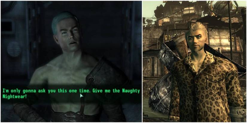Another crazy questline from Fallout 3 is an unmarked one called Grady's Package. You hunt down some kind of item from clues you found and discover it is pajamas. Not just any pajamas though, but the fabled naughty nightwear!