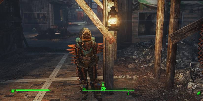This set was released for Fallout 4 in its DLC content, Far Harbor. The DLC does have a swampy and coastal setting that suits the armor. However, that lobster cage is absurd. How does your character look left and right? How do they eat? Do they open part of the cage?