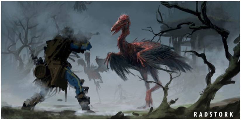 Radstorks are enemies that were supposed to be found in Fallout 4. Something about massive birds attacking the player would have been an amusing sight. While it is unknown if they would have flown, it would be interesting to have a bird foe.