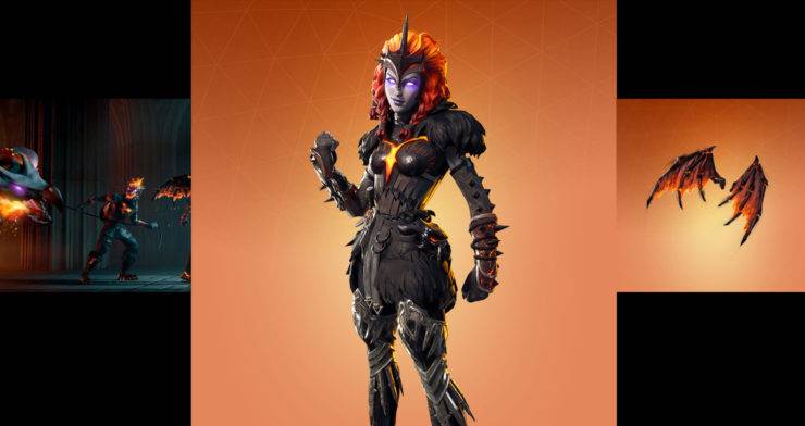 This stunning female outfit was part of the lava legends bundle available for $19.99 with no option to spend V-Bucks at this time. The pack included a number of other items including a set of Molten Valkyrie Wings and a custom loading screen.