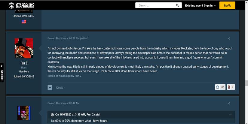 The leaker went on to further discuss his thoughts on the GTA forum, telling GTA fans that Schreier "saying the next title is still in early stages of development is most likely a mistake, I'm positive it already passed early stages of development, there's no way it's still stuck on that stage." He follows up his claim by stating "it's 60% to 70% complete from what I have heard." This undeniably complicates the recent claims surrounding the development of Grand Theft Auto 6, especially with Tez2 being a reputable source.
