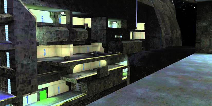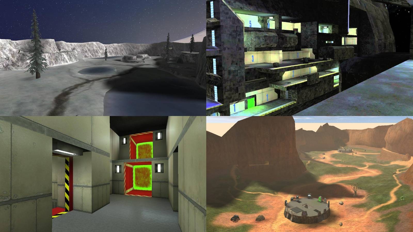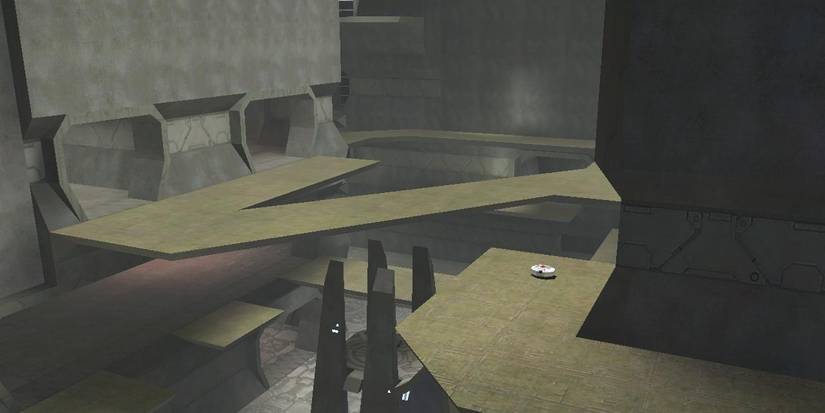 This would be a great map, but for one simple issue, it's impossible to spawn on the top level. This means that once a team gains control over the top, it's extremely hard to take it back. If the pistol weren't a starting weapon than taking back the top would be next to impossible. Its remake, Warlock, in Halo 2 improved upon Wizard.