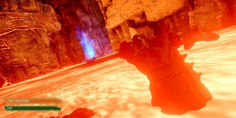In Doom Eternal, in any level where there is lava in the environment, you can recreate this death by simply go for a swim and dying. Just before the screen goes black, Doom Slayer gives the player a thumbs up.