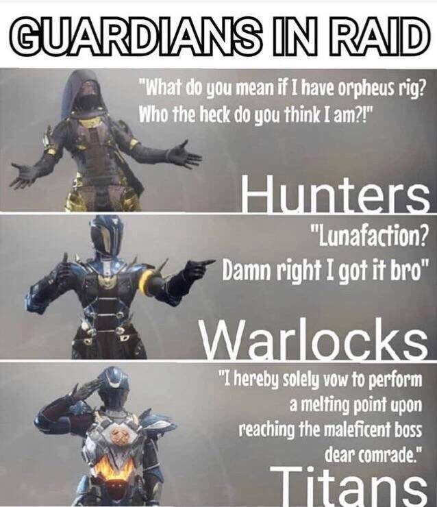 Anyone who has played Destiny 2 long enough to engage in a Raid should immediately understand this meme. When Raids first release, guardians are eager to jump in and get their hands dirty, swimming through hordes of enemies, difficult puzzles, and frustrating bosses just to be among the first to conquer the newest threat to harass the galaxy. You can pretty much guarantee at least a week or two of high-octane action, and then the guides and speedruns start pouring in. Pretty soon, everyone has their role, and anyone looking to "get things done as smoothly and quickly as possible" better have the right exotics equipped.