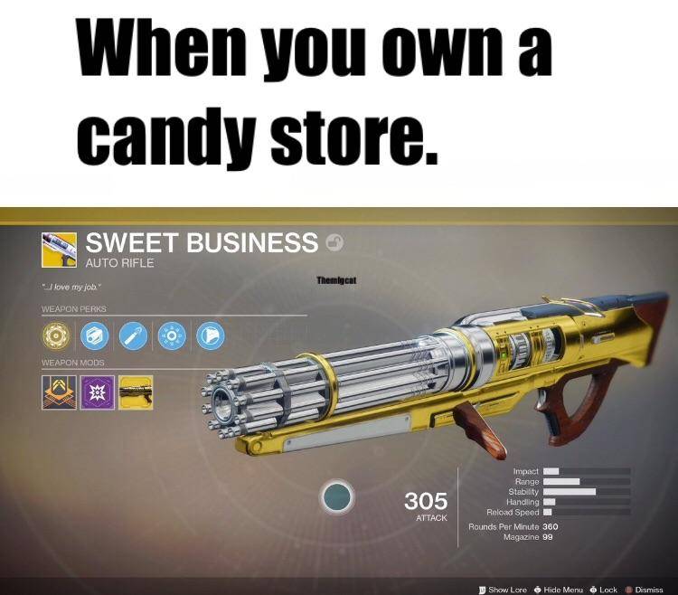 Some of the best memes to spawn from Destiny 2 concern Bungie's clever weapon names so we'd be remiss if we didn't include at least one here. Some of them are a bit risque and others are just plain puntastic with the Internet pulling out all the stops to milk the craze until it was dry. Hopefully, Bungie will continue to crank out some great weapon names in the future so we can see a revival of this meme at some point.