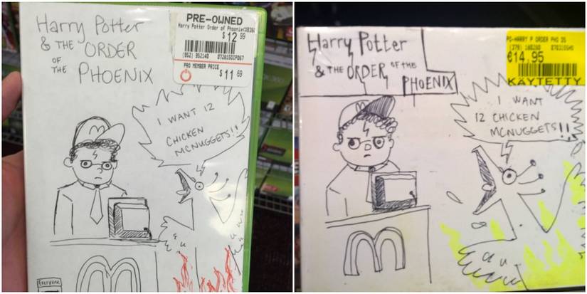 What should be noted is Harry’s sullen face as the Phoenix screams out his order. Fast-food employees can relate to this on some level. The fact that this doodle made it onto an Xbox 360 box and DS one makes it even more priceless.
