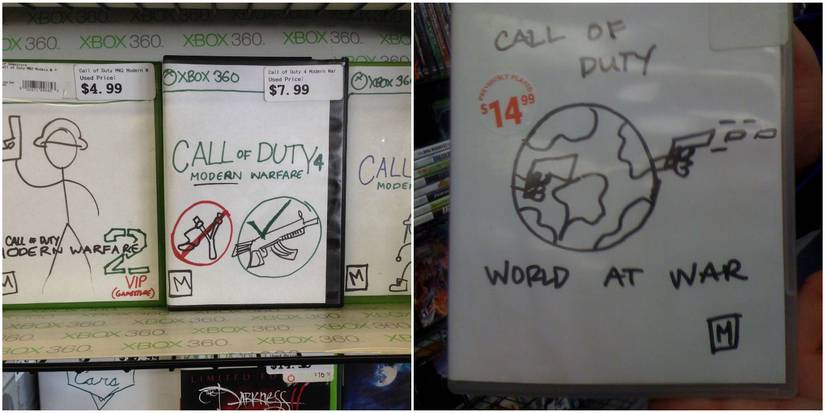 This is also a combo piece because, again, it was too hard to resist putting more than just one entry on here for Call of Duty. First of all, substituting a slingshot for a rifle does constitute modern warfare in the year of its release. That said, an average consumer could assume then that the other games in the series before this either involved children or was about Biblical battles like David vs. Goliath.