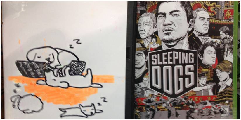 This is a pretty obvious parody as Sleeping Dogs is a pretty nonsensical name. It comes from the saying “let sleeping dogs lie” which basically means leave things as they are. The game is about a cop going undercover to infiltrate a gang.