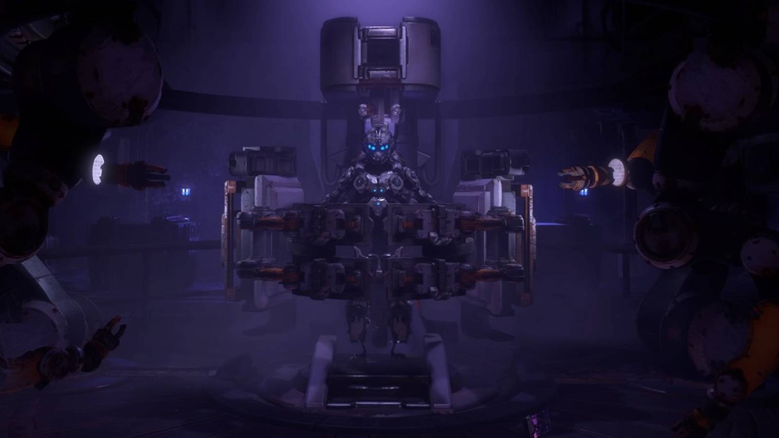 On a small table is a set of cuffs with a glowing blue ring inside the bonds. It’s the same cuffs seen in the trailer for the game and serve as a collectible in this one.
