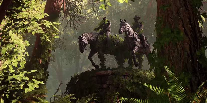 Another area located in the real-life Colorado Springs area is a set of statues tucked away in the forest of the game. Near the United States Air Force Academy Chapel are two statues of men on horseback, covered in vegetation and nestled within the trees.