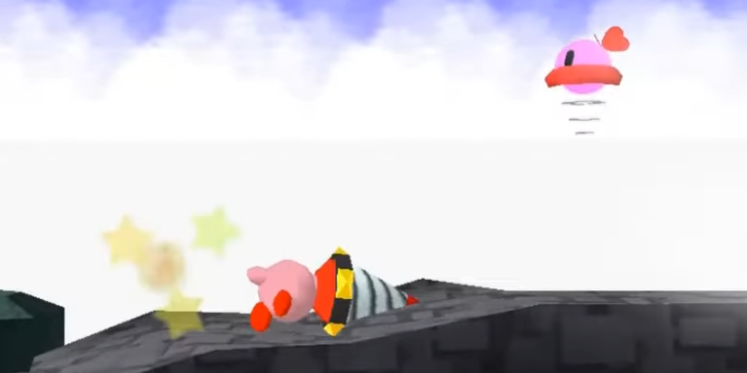 Holding down the attack button causes Kirby to thrust an arm forward, transforming into a drill. The drill pulls Kirby forward, and when the button is released, he stops moving and launches the drill forward as a projectile.