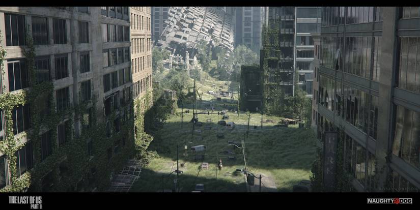 The Cordyceps Brain Infection — CBI — is a parasitic fungus that changed the world as we know it. 60% of the population was either killed or infected by it. The infection itself is known as Cerebral Cordyceps Infection. After being infected, humans transform into seven stages - if you include the after-death development, the fungus continues to grow, consuming the body mass to release spores — a circle of life. The parasitic fungus doesn't affect animals, only humans. Naughty Dog is pointing out that humanity is the real threat and is meant to die in this game. Nature is taking back the world from humankind, allowing animals to thrive in abandoned cities, while lush forests are once again permitted to grow and flourish.