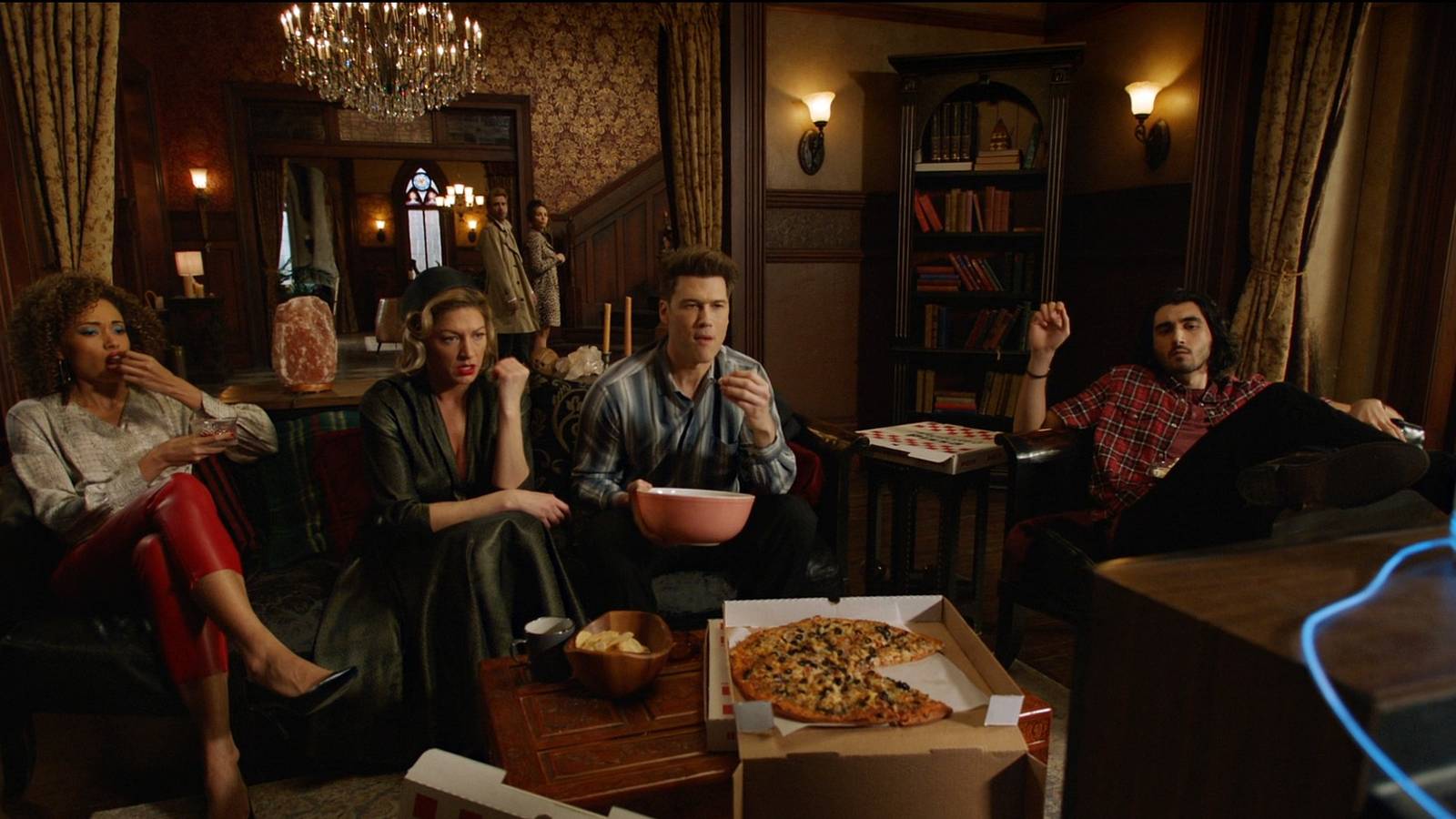 “Bishop’s Gambit” foregrounds these existential questions in big and small ways, with Behrad even telling the pizza deliveryman “names and nomenclature imply we aren’t the same organism, living and breathing as one.” Who we are is a tricky enough question, without it being further complicated by alien hybrids, lacking magical powers, or being clones. Admittedly trying to including most of Legends of Tomorrow’s large cast leads to these storylines being spread fairly thin. Constantine’s annoyance at the Legends bunking at his home, for instance, has nice gags of them eating popcorn on his couch but has little time to play out. Likewise, the tight plotting means the episode loses some of Legends of Tomorrow’s anarchic, anything-goes glee.