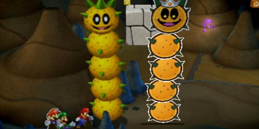 This Pokey duo will attack in similar forms, able to do damage to all the Bros with their attacks. They can roll forward and back, hitting all the Bros at once unless you time their jumps. This was much easier for Paper Mario because of his ability to float in the air to prolong his jump.