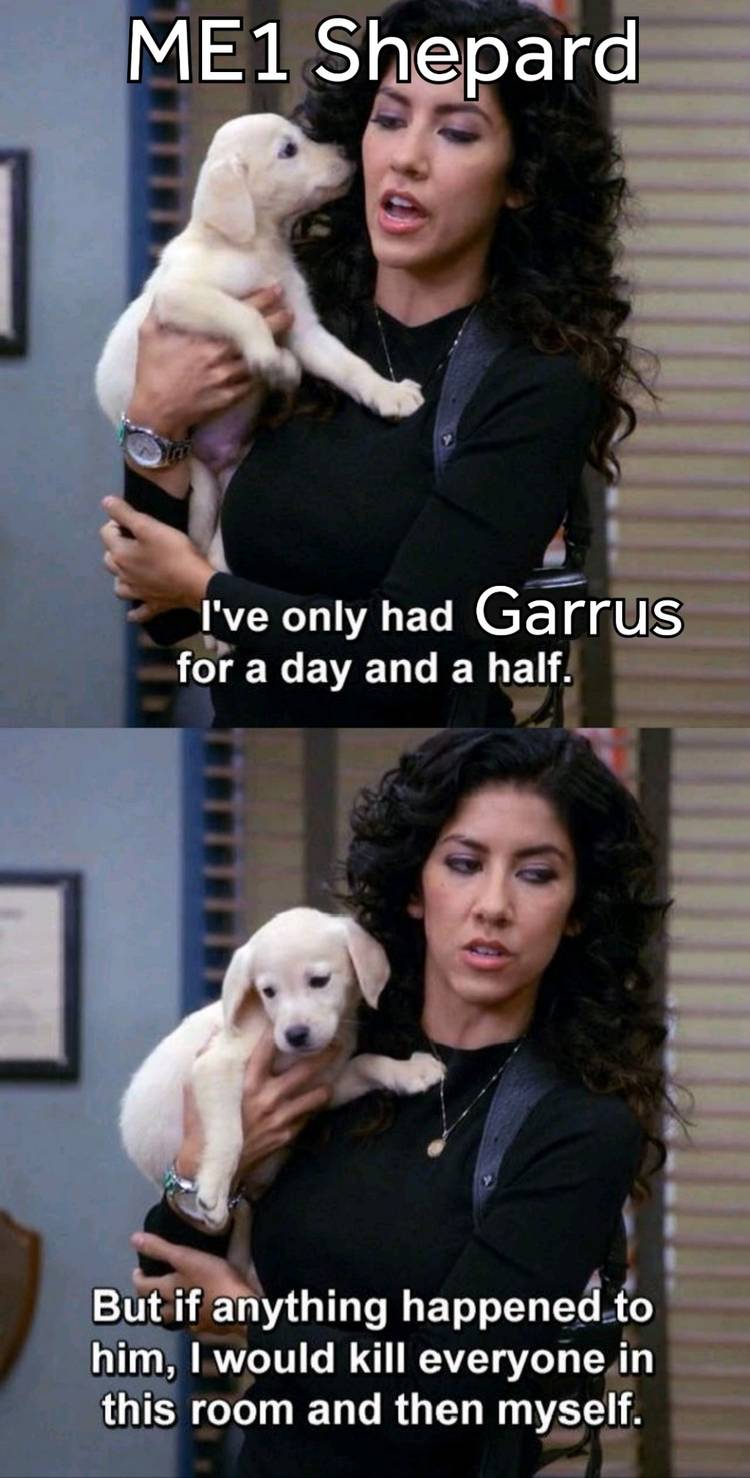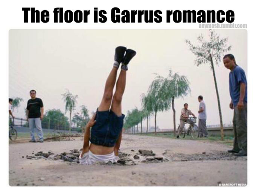 Most Garrus memes are in relation to his popular romance. Due to his popularity, people who play male Shepard have been disappointed that Garrus can only be romanced by female Shepard.