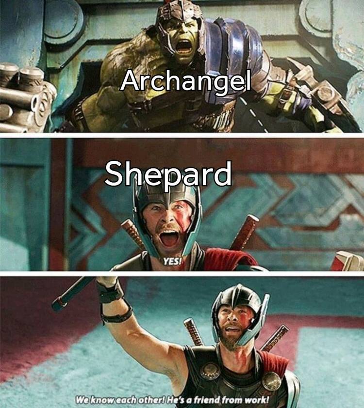 Reuniting with Garrus in Mass Effect 2 is epic and is not so far off from Thor reuniting with Hulk in this meme. Garrus becomes a vigilante and makes a ton of enemies under the name of Archangel. Shepard joins gangs to get to Archangel and it is not until Shepard gets to him that they realize Archangel is none other than their good friend Garrus. It is one of the most pleasant twists of the game.