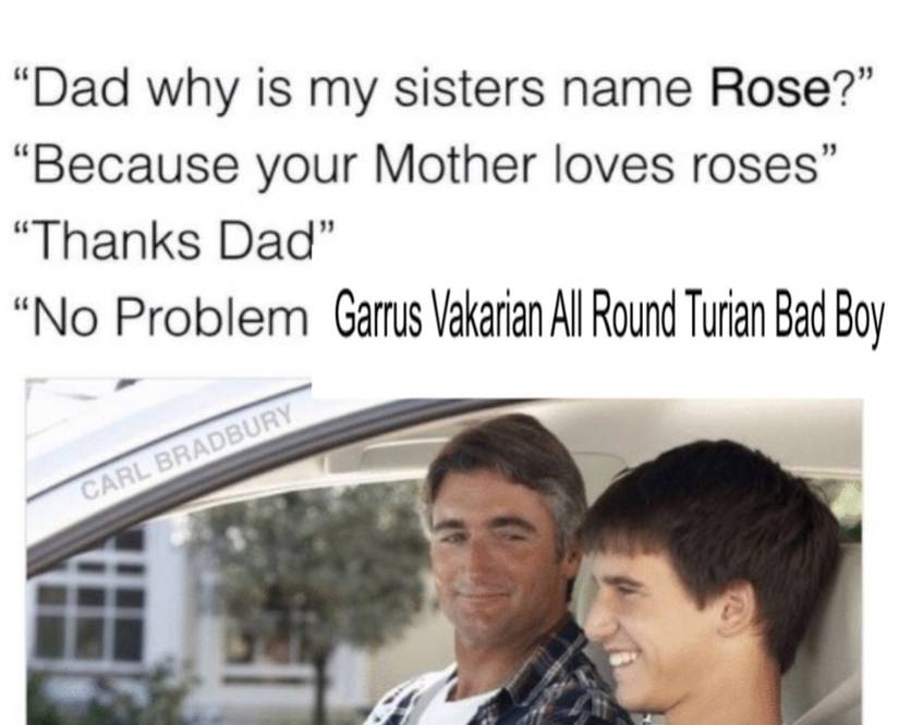 Bioware actually never planned to have Garrus be romance-able, and that is why he wasn't available as a romance yet in the first game. IT was due to his popularity in the first game that made the team decide to make him a romance option. This meme is solid proof of how popular he was in the first game.