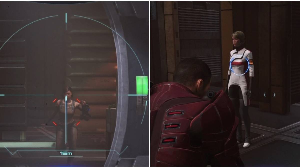 There are no civilians in this first room and the team can engage in no-holds-barred combat here. Additionally, the enemies will funnel down the hallway and it's easier to line up headshots and dodge biotic attacks.