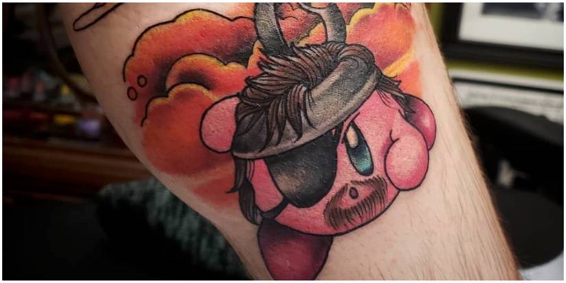 Fans of Metal Gear Solid and Super Smash Bros. Will think this tattoo is perfect, as it could be referencing Kirby's ability to steal other character's ability and copy their style.