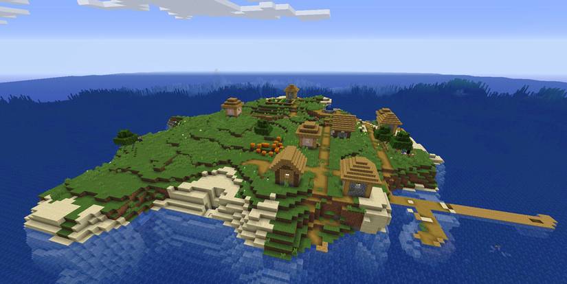 This seed, -7745343045991044849, puts players right at a huge island with a village on it. Finally, we can live out our dream of living on a private island that has everything we need for survival.