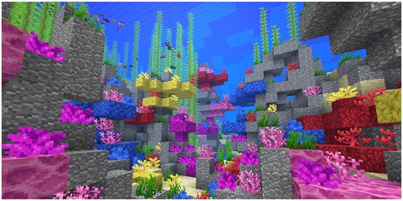 The Aquatic Update breathed a little bit of life into the dull oceans of Minecraft. Players can now find shipwrecked boats full of treasure, coral reefs that add a bit of color, and underwater ruins that also contain treasure. Dolphins and turtles also make an appearance in the water now, and players can now catch fish without the use of a fishing pole.