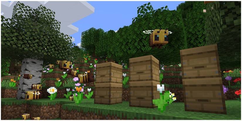 The Buzzy Bee update added bees and honey to Minecraft. Along with being able to make beehives and get honey from the bees, bees also pollinate crops to make them grow faster. They are also neutral mobs, not attacking the player unless attacked first.