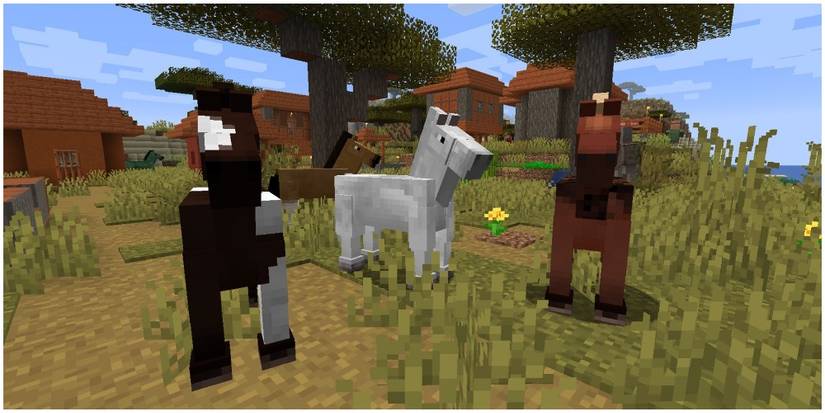 Horses were added to Minecraft in 2013 and let the player travel from one place to another in less time. To control a horse, the player must put a saddle on the horse. Horses make for an easier mode of transport, as players do not need to worry about crafting enough tracks or a minecart to travel from one area to another.