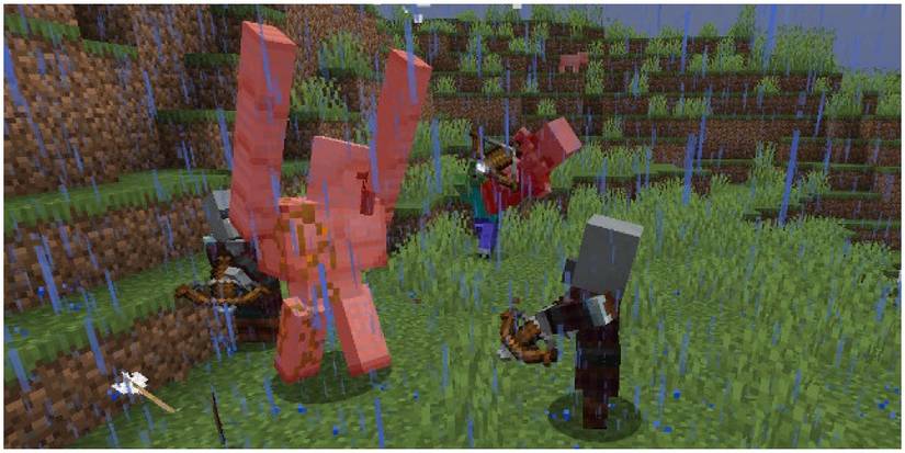 Raids were added in 2018 and has a group of Pillagers attack a village, which the player must then defend. To get a raid to happen, the player must kill a raid captain to get the Bad Omen status, and then must go to a village.
