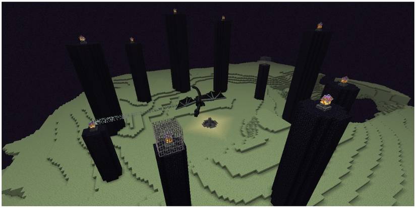 The inclusion of The End is one for the first major changes introduced to the game. The End was added as part of the Adventure Update, which spanned the Minecraft beta and full release. When the player enters this world, they fight the Ender dragon. When defeated, the player can then claim a dragon egg and return to their world.