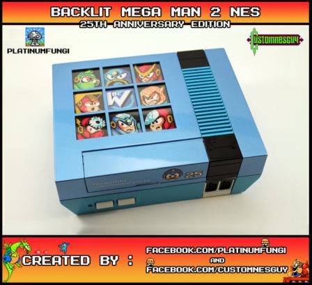 Of that bunch, it's arguable that Mega Man 2 was the best. It features the perfect storm of difficulty, cool robot masters, unique power-ups, and a stellar soundtrack. Designers PlatinumFungi and CustomNESGuy pay homage to the title with this beautiful backlit custom NES featuring the "stage select screen" cut and placed right into the top.