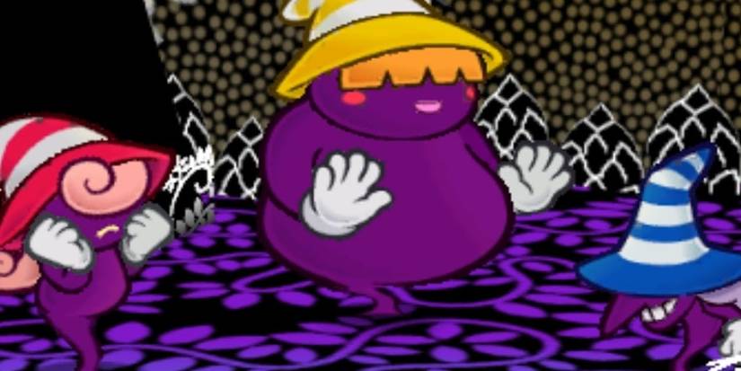 The Shadow Sirens fight changes from the first time you meet them. With Vivian being a member of the party before joining Paper Mario, the Sirens had to replace their lost member with Doopliss. In the Palace of Shadow, Beldam fights by buffing her team or debuffing Mario’s with her spells. She doesn’t have as much health as Marilyn, the brawn of the group.