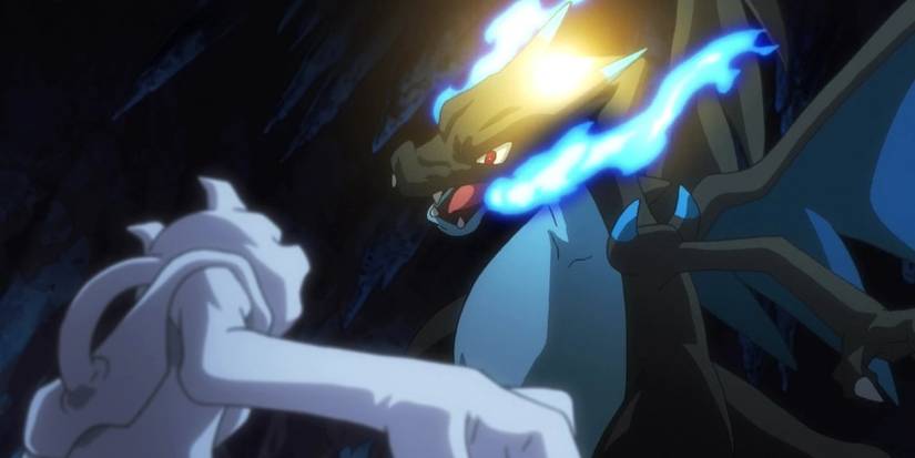 Mega evolution was introduced in Pokémon X and Y and depending on which game you got, you could Mega Evolve Charizard into different forms. Like the games, the forms were called the X and Y mega evolution forms of Charizard. The only other Pokémon that got this special treatment was the legendary Mewtwo.