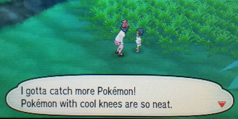 Yet another young child being an absolute weirdo in the Pokémon games, this enterprising young man is intent on catching more Pokémon because he likes the ones that have “cool knees.”