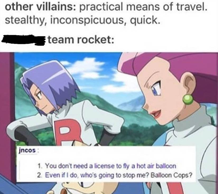 This makes us question what types of vehicles the rest of Team Rocket uses. Are they all floating around slowly in balloons?