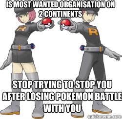 So why is it that Team Rocket is so content to simply "go away" when they lose a Pokémon battle? You'd expect criminals to push Red down, steal his bike, and take all of his Pokémon. Maybe "criminal" is too strong a word for Team Rocket.