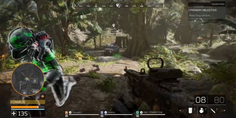 Like the movies, the Predator can lose track of the fireteam if they cover themselves in mud. Each member of the team should start the game off by jumping to the ground and getting a good coating of mud on themselves.