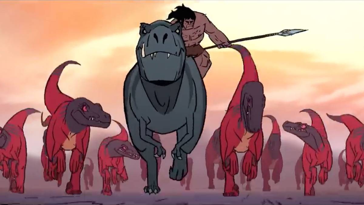 What makes Primal so unique is its lack of dialogue, meaning anything the story needs to convey is done purely through imagery and sound design. Primal tells the story of a caveman named Spear and a tyrannosaurus named Fang who bond over some unfortunate events. When Spear's family is devoured by a pack of dinosaurs, he becomes suicidal. Spear has trouble getting out of his depression, but he learns to lean on an unlikely friend. Fang, the t-rex, and Spear form an unbreakable bond of friendship where they will do anything to keep the other safe in a dangerous and scary world. The same dinosaurs who killed Spear's family have also caused the female tyrannosaurus to lose her hatchlings, and so begins their journey of survival together.