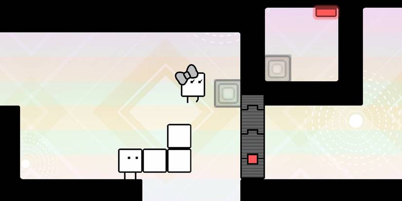 The boxes can be extended into simple shapes. An upside-down “L” shape can allow Boxboy or Boxgirl to catch the edge of a high platform, and then as the boxes collapse they drag the player onto the higher platform. The boxes can also form solid structures that can be used to cover a hazard (like spiked pits).