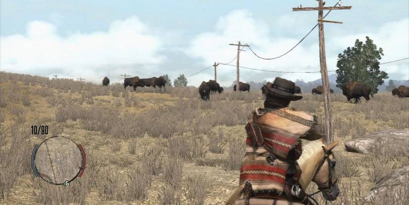 Big groups of vultures appear at gang hideouts once the player has killed all the inhabitants, wolves and coyotes travel in packs at night, deer and buffalo roam in herds, and birds fly in flocks across the map.