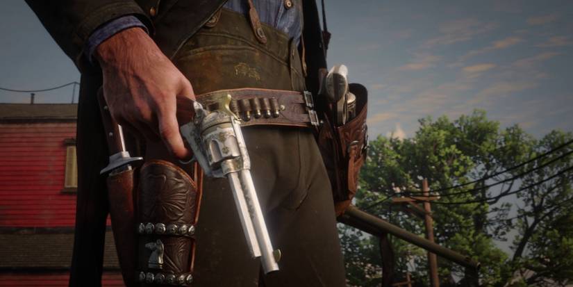 Rather than selecting the fist or pressing R1 one time, simply tap R1 twice in quick succession. Should you do this, Arthur will twirl his pistol around his finger before holstering it with a particularly satisfying "whock." We love it, and we do it every single time.